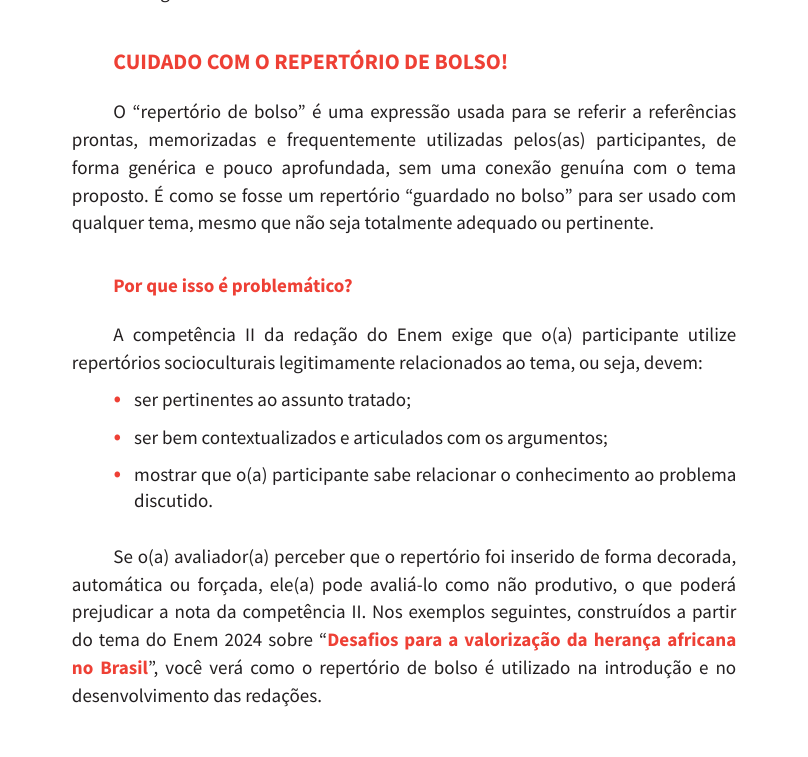 O Inep explica que “repertório de bolso” são aquelas citações ou referências decoradas e usadas de forma genérica, sem relação real com o tema da prova.📌 Por exemplo: citar a obra Utopia, de Thomas More, em qualquer tema, sem contextualizar sua crítica histórica, é considerado repertório de bolso. Isso pode prejudicar a sua nota, já que não demonstra autoria nem produtividade na Competência II.